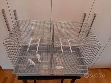 vendo gabbia da cova, completa di grata sul fondo, divisorio, 4 bastoni, 2 beverini e 2 mangiatoie. dimensioni: H44*L65*P35 usata ma in ottime condizioni.