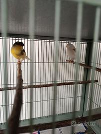 vendo bellissima gabbia a e scomparti con cassetti estraibili e ruote + coppia di canarini gloster.