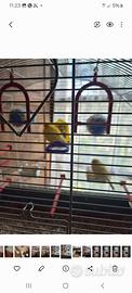 gabbia con accessori nidi giochi e piedistallo ferro battuto .canarini pappagallini