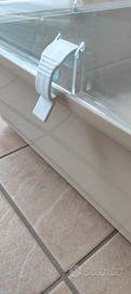 La griglia è completamente sollevabile e chiudibile tramite appositi gancetti di sicurezza ruotabili.