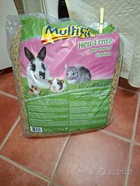 vendo in blocco gabbia completa di accessori + trasportino + fieno da 4kg quasi nuovo e stick erba + spazzola come visibile in foto. Prezzo affare 50euro.