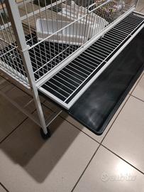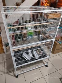 Gabbia grande per uccellini non divisibile ma unico ambiente. 4 mangiatoie doppie. Vaschetta e griglia estraibili separatamente. Ruote per lo spostamento facile. Nuova.