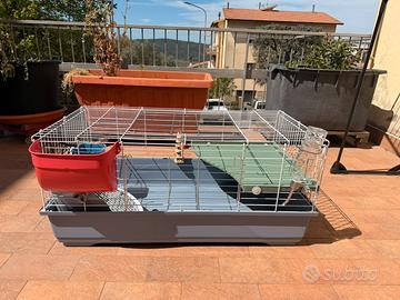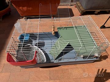 VENDO PER INUTILIZZO DUE GABBIE IN PERFETTE CONDIZIONI,DI CUI UNA COMPRESA DI TUTTI GLI ACCESSORI NECESSARI :(DUE BEVERINI,DUE PORTA FIENO,PORTA LETTIERA,RECIPIENTE CIBO,SCALETTA E TUNNEL (gioco) NON PRESENTE IN FOTO. SI AGGIUNGE ANCHE UN’INTERA SACCA DI PELLET DA 60 lt.