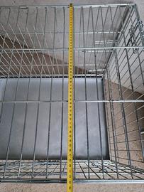 Gabbia in metallo zincato, pieghevole con maniglia, da interni, misure 73x52x60 h. Una porta frontale ed una laterale. Fondo in metallo, struttura robusta.