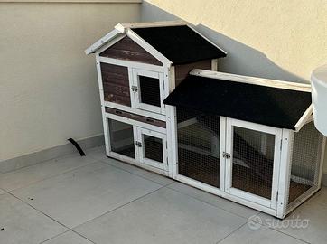 Gabbia chalet in legno per conigli o gatti, uso esterno o interno, già montata. Misure cm. 140x45 altezza h. 48-85 doppio ambiente. Un vero lusso per gli amanti dei piccoli pet.