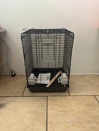 Gabbia completa per uccellini con doppia apertura,completa di posatoi mangiatoi e beverini.