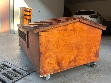 Gabbia realizzata a mano, completamente in legno dotata di piccole rotelline per facilitare lo spostamento. Il legno presenta alcuni graffi di usura ma per il resto è ottima. Con solo ritiro dal vivo.