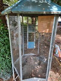 vendo voliera/gabbia esagonale come da foto,apertura sul fondo per la pulizia, completa di mangiatoia e abbeveratoio, no perditempo