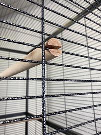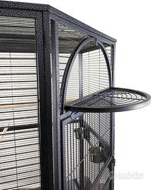 Aperture: è presente un'ampia porta frontale (55,5 x 93,5 cm) comoda per le operazioni di manutenzione e un'ulteriore porticina nella parte superiore (49,5 x 24 cm) che funge da ""balconcino"", permettendo al pappagallo di entrare e uscire autonomamente.