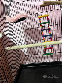 Vendo gabbia bella ampia per pappagalli pagata 170€ come nuova vendo a 50€ all interno ha 3 rami un nido porta acqua giochini vari