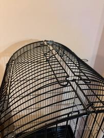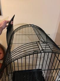 La gabbia ovviamente non ha ruggine, ha un anno di acquisto e la cambio per espansione di gabbia per via di un nuovo papppagallo e all’interno di questa due pappagalli di taglia media non entrano ovviamente.