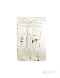 La gabbia per pappagalli Manor è ampia robusta ed elegante. Il pratico parasporco, il quale può essere montato e smontato a piacimento, impedirà che particelle di sporco vengano gettate dall'animale al di fuori dalla gabbia. Così lo spazio circostante la gabbia rimarrà sempre pulito e questo semplificherà la pulizia di casa. Sul lato frontale si trova una porta robusta di grandi dimensioni (30x56 cm.), che permette al volatile di entrare ed uscire comodamente dalla gabbia e al proprietario di organizzarne l'interno con facilità. La porta si chiude con una serratura di sicurezza a scatto. La gabbia è dotata di posatoi in legno e di 3 ciotole in acciaio per cibo e acqua, che vanno poste in appositi alloggiamenti con sistema antiribaltamento. Cassetto in metallo estraibile, per consentire una pulizia facile e veloce. Verniciata a polvere con le migliori tecnologie sul mercato. La parte superiore della gabbia può essere tenuta chiusa o aperta e fungere da trespolo inserendo nell'apertura l'apposito posatoio. La gabbia è dotata di ruote per un'ottimale mobilità (2 con freno) ovunque in appartamento o in terrazza. Caratteristiche : Misure esterne con posatoio aperto: 100x78x178h cm. Misure esterne con posatoio chiuso: 100x78x168 h cm. Misure interno gabbia: 81x59x124h cm. Spessore delle barre: 3,2 mm Distanza tra le barre: 2,6 cm Peso: 27 kg. Grande apertura centrale Un posatoio in legno interno Un posatoio in legno esterno. Tre piccole aperture per l'inserimento delle mangiatoie. Tre mangiatoie in acciaio Vassoio estraibile. Due ruote con sistema di frenaggio. Griglia anti-sporcizia.