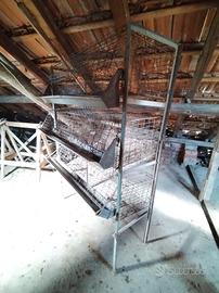 gabbia per allevamento conigli in rete di ferro zincato discrete condizioni su tre piani 2 scomparti x piano con mangiatoie e bacinelle raccolta deiezioni