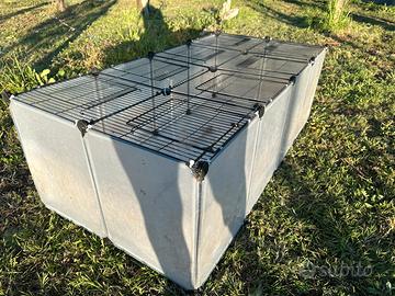 Gabbia in buone condizioni, pvc e ferro. Componibile con 6 aperture Gia montata ma con possibilita di smontaggio per animali di piccola/media taglia