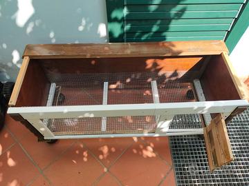 Gabbia costruita trasformando una vecchia cassapanca. Assai robusta, apribile anche dall'alto. Misure cm. 115 x cm. 45 x h. cm. 52. Non spedizione ma solo ritiro in loco. Annuncio valido per venti giorni.