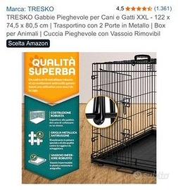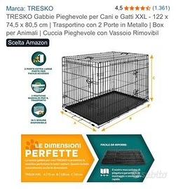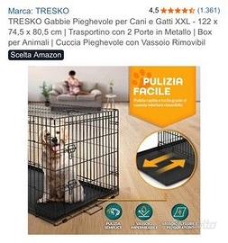Vendo gabbia nuova usata solo poche ore perchè troppo grande per la nostra cagnolina (vedi prima foto). Costo iniziale 85 euro.