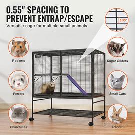 Robusto e pratico: i tubi quadrati di metallo spesso rinforzati assicurano grande stabilità e resistenza alla ruggine grazie alla verniciatura a polvere fine e uniforme e alla saldatura. La gabbia per piccoli animali presenta una spaziatura stretta delle maglie metalliche.