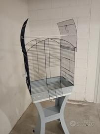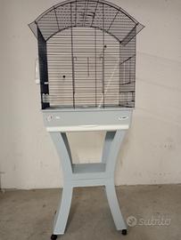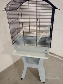 Gabbia per calopsiti in ottime condizioni con piedistallo con ruote per spostamenti facili. Completa di mangiatoie, posatoi, beverino. Con fondo per lettiera raccogli sporco estraibile. Apribile superiormente con posatoio. Marca Imac. Da consegnare solo sul posto in presenza. Piedistallo smontabile.