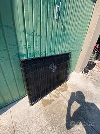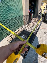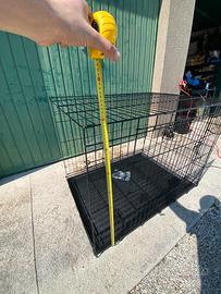 Gabbia per cani medio/grandi Vendo gabbia per cani medio/grandi con struttura in metallo e base di plastica estraibile, una porta lato corto e una più grande lato lungo, entrambe con due chiusure. Usata per circa un anno in furgone ma il cane ci sarà entrato una decina di volte (quando è salito sul sedile non c’è stato più verso di tenerlo nel “trasportino”). Ottime condizioni, nessun segno di ruggine, cerniere e chiusure funzionano perfettamente. Io la usavo in casa e sul furgone, le dimensioni sono eccessive per auto piccole. Non ho il libretto delle istruzioni o lo scontrino ma l’avevo presa nuova a poco meno di 170€. Per altre foto o informazioni non esitate a contattarmi. Disponibile a muovermi per far vedere ed anche a spedire. Prezzo trattabile