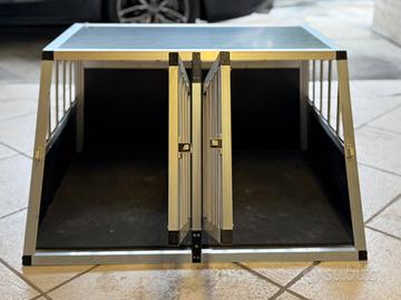 Gabbia per cani taglia medio grandi,tutta in alluminio con doppia entrata,usata per pastore tedesco (circa 30 kg).Astenersi perditempo,prezzo poco trattabile.Solo ritiro a mano.