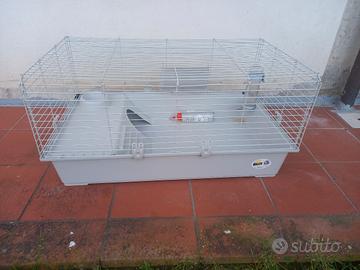 gabbia circa 70 × 100 cm, sotto in plastica e gabbia in metallo. Con contenitore cibo e acqua. Oggetto usato ma in buone condizioni. Preferibile ritiro in loco (Comune di Pistoia), altrimenti spese di spedizione a carico dell'acquirente in base alla scelta del corriere.