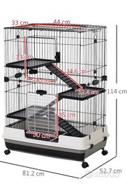 gabbia per cincillà a due piani con due porte...con cassetto estraibile e ruote per spostarla