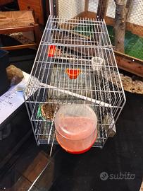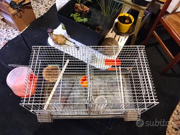 vendo gabbia in ottimo stato,come da foto con tutti i vari accessori che si vedono misure 58x29h33 è munita di un divisorio removibile come si vede in foto