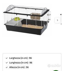 Vendo gabbia per conigli usata ma in ottimo stato, modello Ferplast Casita 100. Misure in foto. Adatta per 1 o 2 conigli. Completa di accessori.
