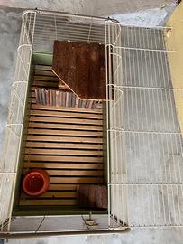 Gabbia per conigli domestici o animali di piccola taglia come porcellini d’india, facilmente trasportabile grazie alle 4 ruote.
