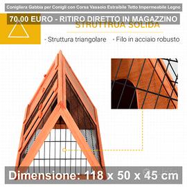 DESIGN PRATICO: Realizzata pensando alle esigenze dei tuoi animali, questa conigliera offre un comodo spazio per nascondersi e riposarsi, collegato a un'area esterna che permette di muoversi e godersi l'aria aperta. Grazie al recinto all'aperto costruito in fili metallici, garantisce un buona ventilazione per bambiente interno.