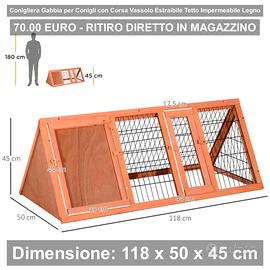 DIMENSIONE: Dimensione generale: 118L x 50P x 45Acm. Dimensione porta sinistra: 33L x 44Acm. Dimensione porta del recinto: 17.5L x 44Acm.
