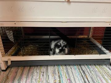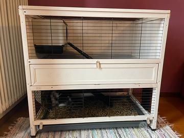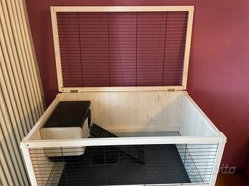 gabbia per conigli e porcellini d'India in legno a due piani, il modello è Cottage Indoor Home del marchio Ferplast