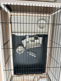 Ferplast Gabbia in legno FSC per conigli ARENA 100, Porcellini d'india, Accessori inclusi. Misure in foto. All’interno in un lato il legno è stato rosicchiato.