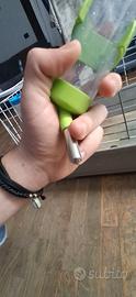 vendo gabbia per conigli usata con inclusi accessori come porta erba ciotola e due beccucci per bere di cui uno usato pochissimo, vendo per. inutilizzo la gabbia è in buono stato doppia apertura sia davanti che sopra, smontabile dai ganci laterali