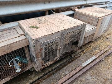 Vendo 3 gabbie per conigli. Una è doppia, una grande con il nido e una grande attualmente senza nido, ma si può aggiungere. Senza piedi. Compreso mangiatoie e beverini.