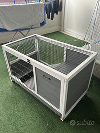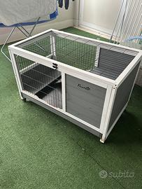 Conigliera da interno/esterno con cornice in legno, griglie per aerazione fondo rimovibile per pulizia. Dimensioni 90 x. 65. Vendesi per inutilizzo.