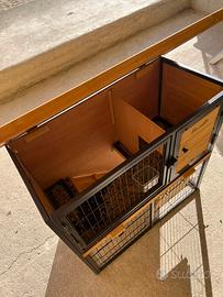 Vendo nuovissima casetta gabbia per coniglio , usata un mese . Fatta veramente bene, regalo vasca da usare come base , mangiatoia fieno , abbeveratorio e mangiatoia mangime . Adatta anche per porcellini d’india e forse criceti