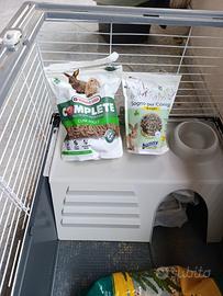 vendo Gaby per coniglio con vari accessori nuovi , fieno pellet ecc, più gabbia da trasporto valore tutto compreso 170€ vendo per 110 trattabile