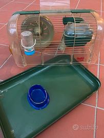Gabbia per piccoli roditori in plastica e metallo completa di accessori come da foto