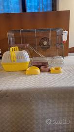 Gabbia per criceti con vasca inferiore in cristallo completa di accessori e trasportino cm 52 x 28 xh 35 , usata ma in ottime condizioni