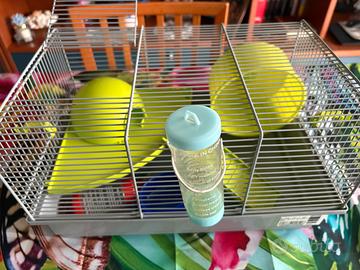 Vendo gabbietta per piccoli roditori in ottime condizioni, ideale per criceti, gerbilli o topolini. La struttura è solida, con base in plastica resistente e griglia metallica superiore che garantisce una buona aerazione. All’interno sono già inclusi tutti gli accessori essenziali per il benessere dell’animale: • Ruota per l’esercizio quotidiano • Casetta/rifugio per il riposo • Ciotolina per cibo o acqua • Bevitoio esterno con beccuccio in acciaio inox La gabbia è pronta all’uso, facile da pulire e perfetta per chi cerca una soluzione pratica e completa. Ottima per chi vuole accogliere un nuovo piccolo amico in casa.