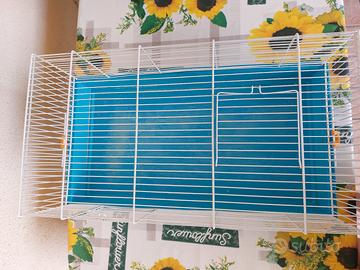 Gabbia per criceti composta da base in plastica e griglia superiore in metallo. Incluso abbeveratoio, rialzo in plastica e una corda da legare alle sbarre. Ottima aerazione e facile da smontare e pulire. Adatta per criceti nani e russi. Dimensioni: 70×45×35.