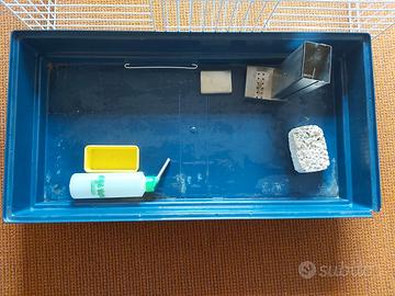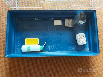 Gabbia per criceti misure 65x35x34 in ottime condizioni. Un solo angolino sbrecciato come da foto, ma che non pregiudica l'uso.