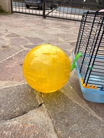 Gabbia per criceto completa di accessori con scivolo, cuccia, mangiatoia, ruota, abbeveratoio e palla per farlo girare in casa