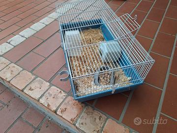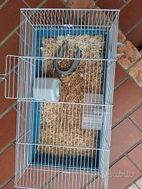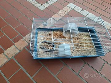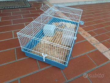 gabbia per criceto 31x58 cm, altezza 21 cm. vendo con casetta e ciotola, manca il contenitore per l'acqua (si vede il supporto sul lato lungo)