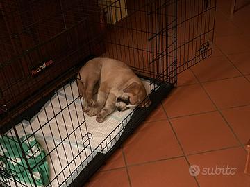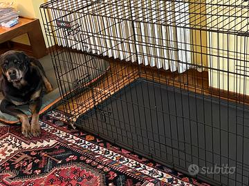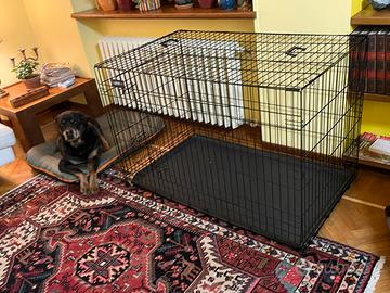 Gabbia grande per cuccioli, dimensioni: 122 cmx74,5x80,5 cm, con doppia porta e pannello di separazione (in modo da contenere contemporaneamente 2 cuccioli), usata due mesi e mai, ripeto, mai sporcata. Si monta in 5 minuti, adatta anche a studi veterinari.