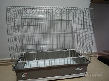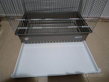 Le misure della gabbia sono 59x38x56 cm, con fondo estraibile per la pulizia. La vendo con una piccola altalena colorata, una ciotola per l'acqua e una mangiatoia e anche dei posatoi in plastica :)