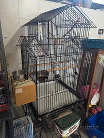 grande gabbia usata poco. molto bella con forma a casetta. lascio anche accessori