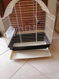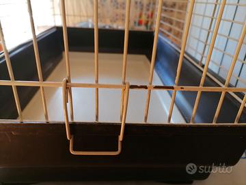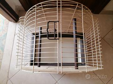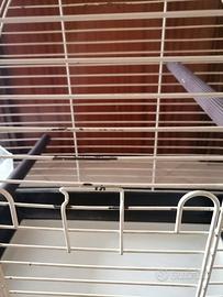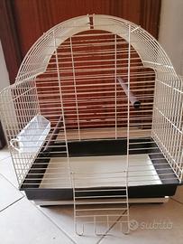 Gabbia per pappagalli e volatili, usata ma in condizioni discrete, con cassettino estraibile per pulire la lettiera. Altezza 58 cm, larghezza 52 cm è profondità 31 cm, spazio tra le sbarre 2 cm. In alcuni punti la vernice è staccata, utilizzata come trasportino per pappagalli di taglia piccola e media, vendo per inutilizzo. Ritiro a mano.