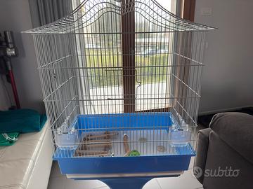 Vendo gabbia per pappagalli con accessori come da foto, misure 49x62 altezza con piedistallo 135. Usata pochissimo, come nuova.